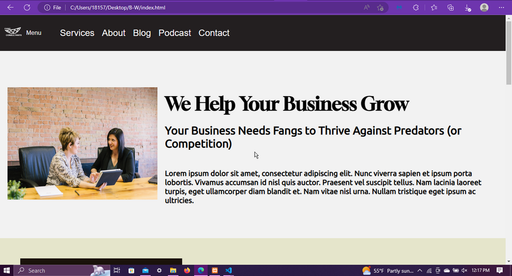 A finished website for your business. Fully packaged with the html and css, ready to customize and put online.